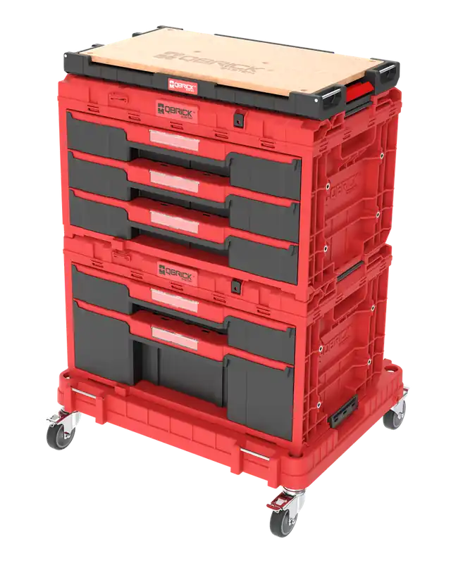 Ladeset op verrijdbaar platform Qbrick System ONE 2.0 WORKSHOP DRAWERS SET nr 5 RED Ultra HD Custom